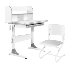 Эргономичный комплект Anatomica Study-80 Lux состоит из растущей парты Anatomica Study-80 Lux и растущего стула Anatomica Lux-01 или Anatomica Lux-02 (на выбор), уже идущие в составе. Главной особенностью комплекта является возможность "роста" вместе с ребенком. Комплект подойдет как для дошкольника, так и школьника, который учится в начальной или средней школе. Парта оснащена удобной вместительной надстройкой, куда легко поместятся книги, тетради или небольшой монитор. Также она оснащена выдвижным ящиком для правильной организации комфортного рабочего места - в такой ящик можно положить тетради, книги, ручки, карандаши и прочие канцелярские принадлежности. При установке парты на неровный пол предусмотрены специальные нивелирующие подпятники, которые помогут парте не шататься. Важной особенность парты является и возможность занятий как сидя, так и стоя, благодаря наклонной столешнице - она может изменять свой угол наклона от 0 до 70 градусов. За такой столешницей можно заниматься как письмом, чтением и черчением, так и рисованием, сидя или стоя, что особенно полезно для осанки и правильного кровообращения. Не скатываться тетрадям или книге под наклоном поможет специальный бортик-ограничитель, расположенный в нижней части столешницы. Антибликовое покрытие защищает глаза ребенка от усталости и отражений света, а сама столешница надежно защищена от повреждений. Закругленные края парты исключают возможность ранения ребенка.